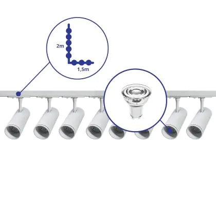 | Manufacturer Name | Complete L shaped 1-Phase Track Set White incl. 8x Spot fixture + GU10 2700K 3W Dim – 1,5 x 2 meter | |