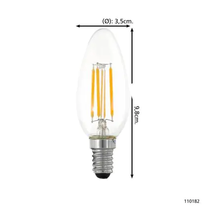 Eglo LED Candle E14 Filament Clear 4.5W 470lm - 827 Extra Warm White | Dimmable - Replaces 40W
