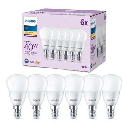 Multipack 6x Philips Bulb LED E14 Pear Frosted 5W 470lm - 827 Extra Warm White