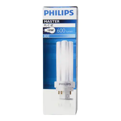 Philips PL-C 4P are compact fluorescent lamps, with separate power supplies, without a starter or capacitor. This model is equipped with a 4 pin socket and is very energy efficient. With their G24q-1 socket, Philips PL-C 10W 830 4P easily integrate into light fixtures.